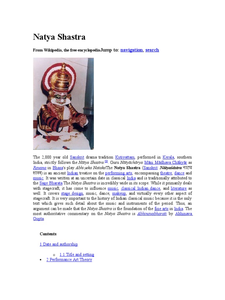 नाट्य शास्त्र, nāṭyaśāstra) is a sanskrit text on the performing arts.